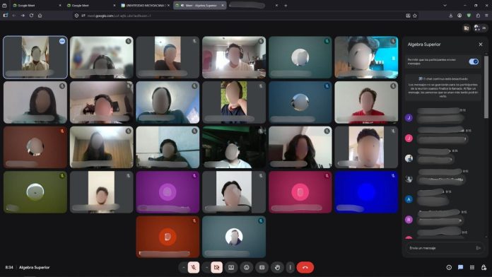 Morelia, Michoacán, a 21 de abril de 2026.- Las actividades académicas en la Universidad Michoacana de San Nicolás de Hidalgo (UMSNH) se llevan a cabo sin contratiempo alguno por medio del sistema virtual, priorizando el derecho a la educación de las y los alumnos, reportan directivos de escuelas, facultades, institutos y unidades profesionales, y destacan que las clases se imparten en los horarios establecidos a través de la plataforma digital Google Meet, haciendo uso de correos electrónicos institucionales.