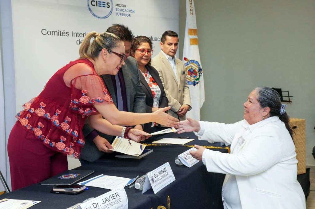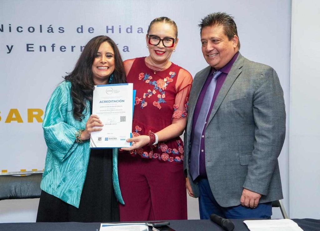 Morelia, Michoacán, a 05 de octubre de 2025.– La Licenciatura en Salud Pública de la Universidad Michoacana de San Nicolás de Hidalgo (UMSNH) obtuvo la primera acreditación en su historia por parte de los Comités Interinstitucionales para la Evaluación de la Educación Superior (CIEES), la cual fue recibida por la rectora Yarabí Ávila González, en el marco del XVIII Aniversario de la Facultad de Salud Pública y Enfermería.