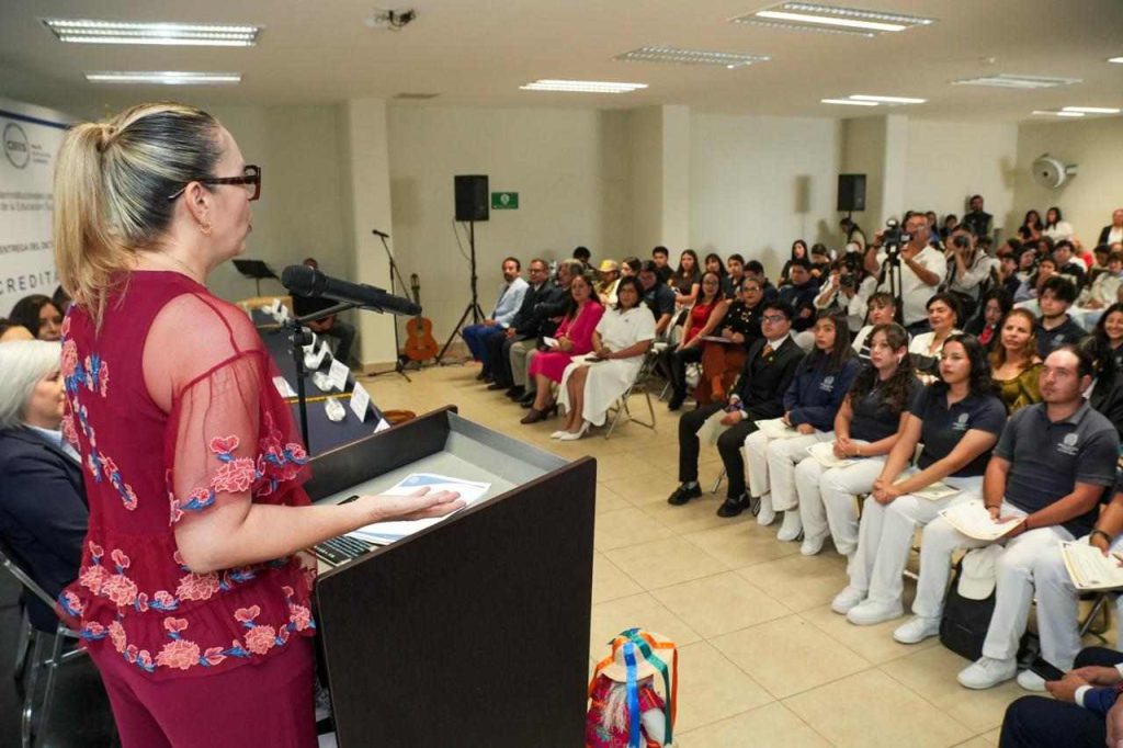 La rectora afirmó que esta dependencia académica no solamente forma profesionistas sino que también construye sueños, impulsa vocaciones, “y sobre todo en cada uno de nosotros la condición de que la salud pública es un bien común que debemos proteger y fortalecer”.