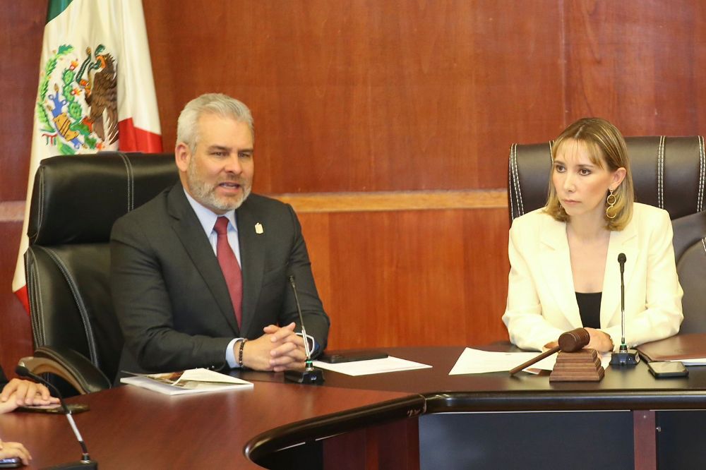 El gobernador felicitó a las magistradas y magistrados del Tribunal en materia Anticorrupción y Administrativa del Estado, Lizett Puebla Solórzano, Swany Peña Reyes, Azucena Marín Correa, Carlos Enrique Verduzco Hurtado y Sergio Alberto Martínez Ocampo, por velar por los derechos de la ciudadanía, frente al Gobierno estatal o los gobiernos municipales.