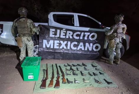 De acuerdo con el reporte oficial, en el sitio fueron localizadas 26 armas de fuego, de las cuales cuatro son largas y 22 cortas, además de ocho cargadores y un vehículo, sin que se reportaran personas detenidas durante la intervención.