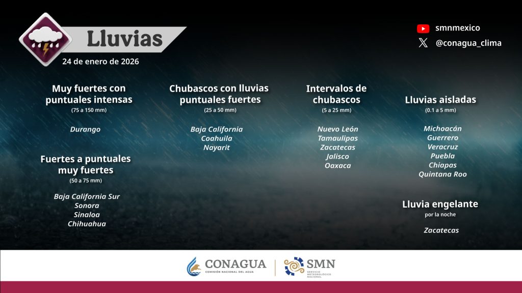 Ante la prevalencia de condiciones meteorológicas adversas en el territorio nacional, la Coordinación Nacional de Protección Civil (CNPC), de la Secretaría de Seguridad y Protección Ciudadana (SSPC), reitera el llamado a la ciudadanía para reforzar las medidas de autocuidado y mantenerse informada a través de fuentes oficiales.