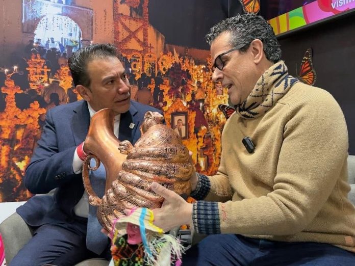 Madrid, España, 22 de enero de 2026.- Michoacán sigue enamorando desde la Feria Internacional de Turismo (Fitur) 2026 en Madrid, España, y ahora tocó el turno a dos figuras públicas ampliamente conocidas en su rubro: el conductor mexicano Marco Antonio Regil, y la diseñadora de moda española, Ágatha Ruiz de la Prada, quienes llegaron al estand de “el alma de México” para reconocer su grandeza y maravillarse con sus atractivos turísticos, naturales y culturales.