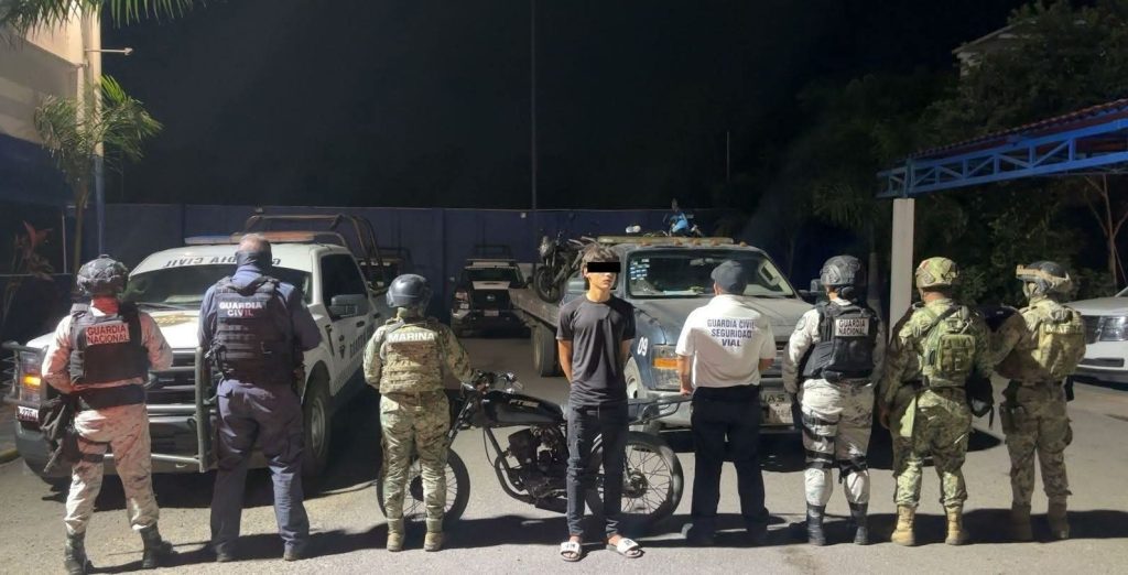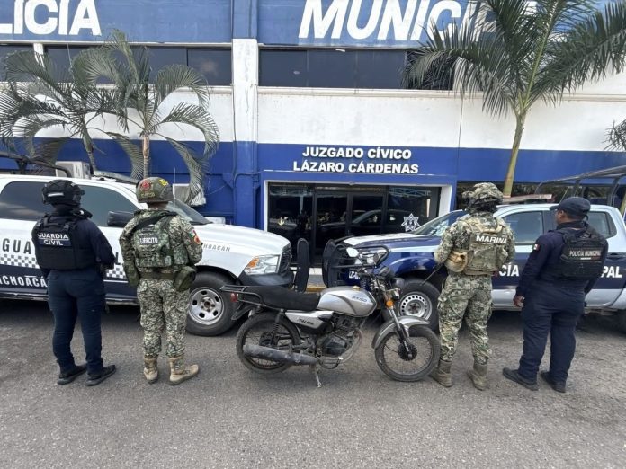 Derivado de los recorridos de vigilancia en los municipios de Lázaro Cárdenas, Arteaga y La Huacana, fueron detenidos siete presuntos infractores de la ley, asegurándose dos vehículos, ocho armas, dos chalecos, 13 motocicletas con reporte de robo, 38 cargadores, 577 cartuchos, ocho dosis de sustancia granulada color blanco con características similares a las de la metanfetamina y siete gramos de sustancia con características similares a las de la marihuana.