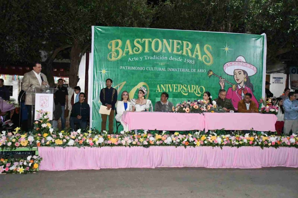 Durante su intervención, la maestra Rosa Elva Marroquín agradeció a Memo Valencia por ser el impulsor del evento “Las Bastoneras, Arte y Tradición desde 1985”, así como por aceptar apadrinar a las generaciones que han hecho de esta tradición, un emblema de Ario de Rosales.