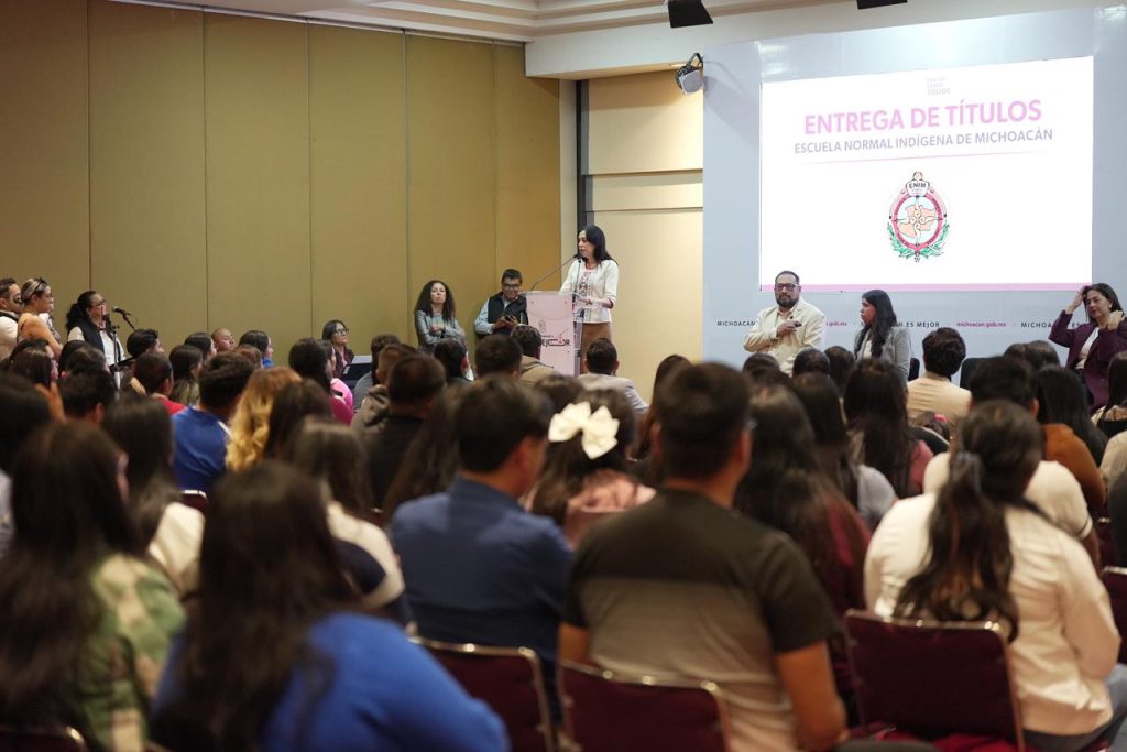 Morelia, Michoacán, 5 de diciembre del 2025.- Michoacán dio un paso decisivo para superar el rezago educativo que durante años afectó a cientos de jóvenes normalistas, con la entrega simbólica de 156 títulos profesionales a egresados de la Escuela Normal Indígena de Michoacán (ENIM), pertenecientes a las generaciones 2019 y 2025.