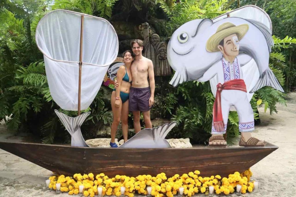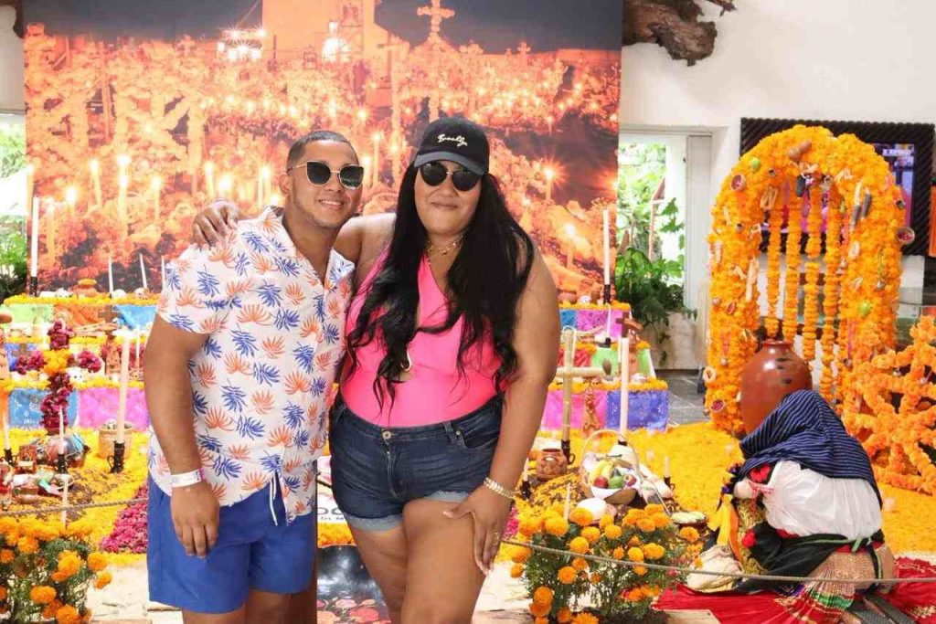 Llegados de México, Elizabeth y Eduardo comentaron que esta era su primera experiencia en Xcaret, por lo que llegar y ver a Michoacán con su emblemática Noche de Muertos les resultó una experiencia única. “Desde la entrada estamos viéndolos a ustedes, un ambiente padrísimo. Las flores, la ofrenda, de verdad es algo muy increíble, nos encanta”.