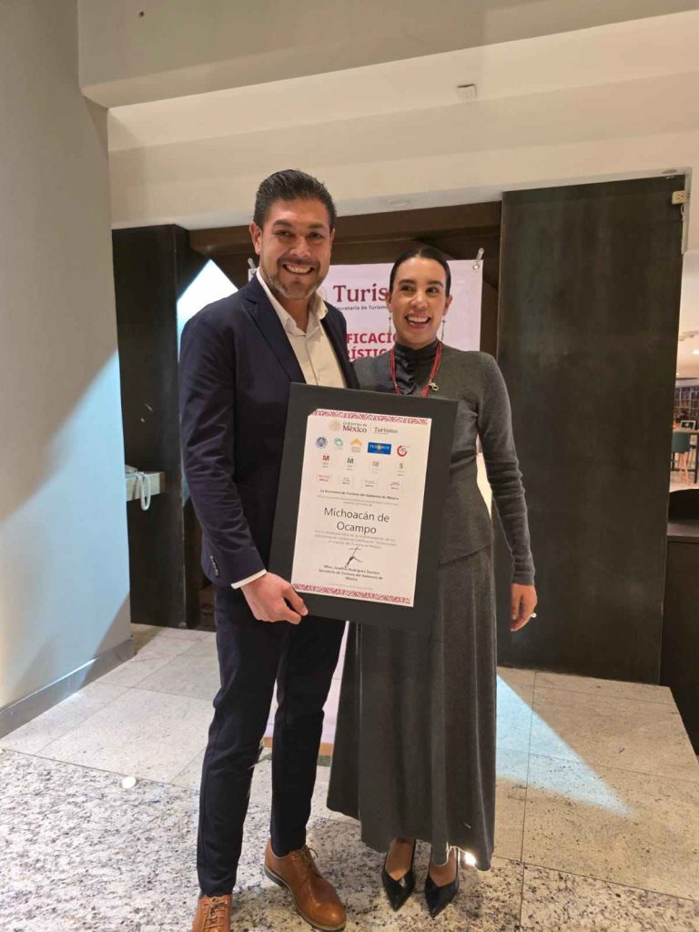 Ciudad de México, 8 de octubre de 2025.- Michoacán refuerza su calidad turística ante los ojos del mundo al recibir distintivos, sellos y constancias de calidad turística para prestadores de servicios, que le fueron entregados por la Secretaría de Turismo federal.