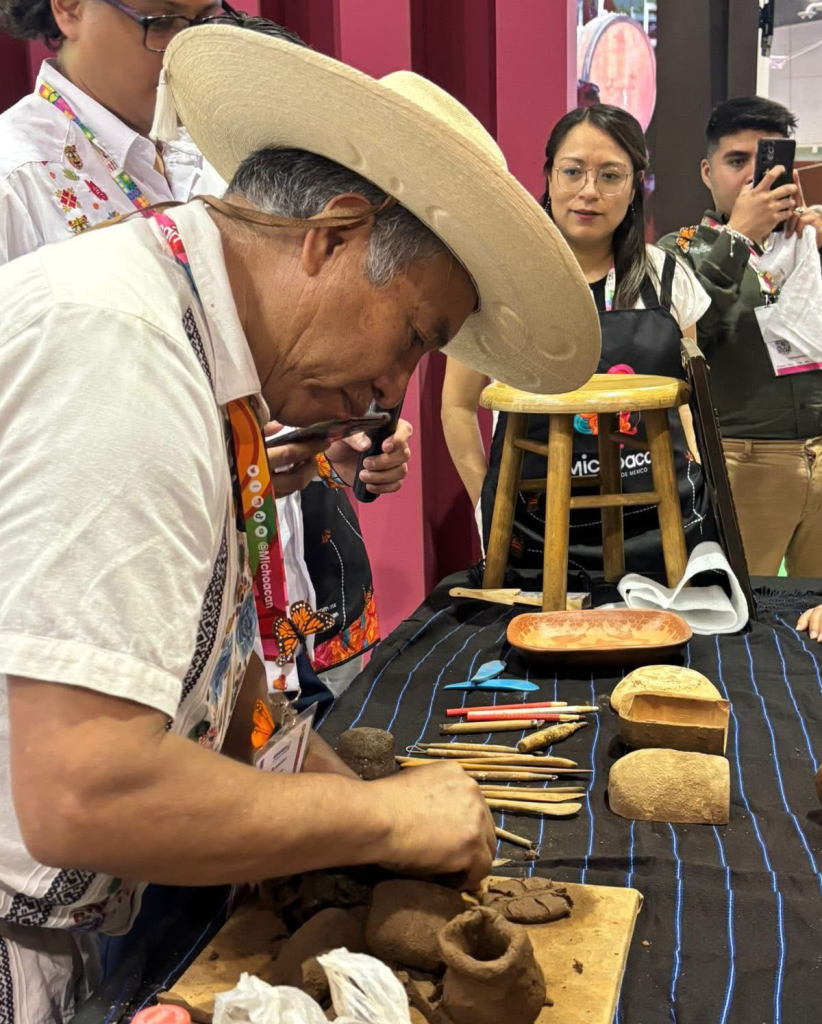 “El taller fue de acabado o decoración, aquí no hubo quema porque no hay horno. Más de 40 asistentes participaron haciendo la pieza. Es importante que los turistas toquen el barro y, con sus manos y corazón, hagan un trabajo de alfarería. Nosotros venimos a este lugar con el apoyo de la Sectur Michoacán que, junto con la subsecretaria Lucero García, nos da la oportunidad de participar en eventos nacionales”, comentó el maestro artesano, quien cuenta con más de 30 años de experiencia en su labor.