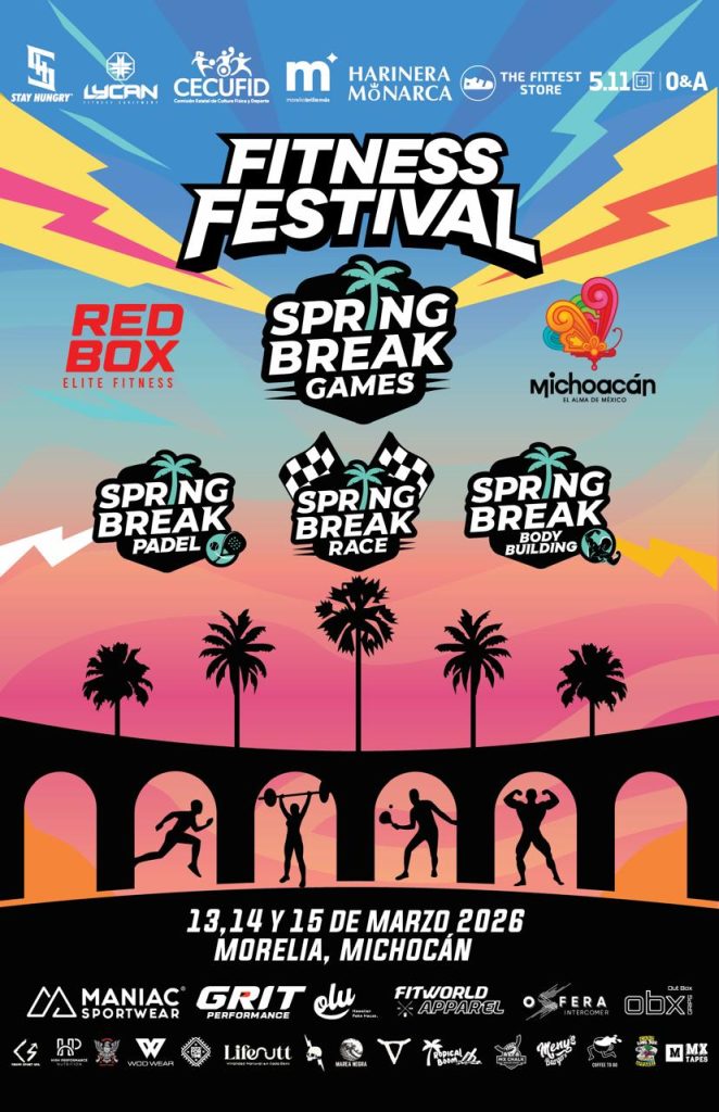 Morelia, Michoacán, 24 de febrero de 2026.- Michoacán será sede del Spring Break Games Fitness Festival 2026, la segunda competencia más importante a nivel nacional en su rubro, la cual se llevará a cabo del 13 al 15 de marzo, informó la Secretaría de Turismo de Michoacán (Sectur), dependencia dirigida por Roberto Monroy García.