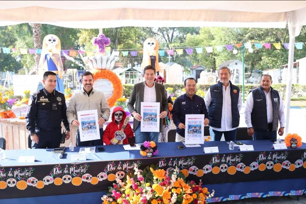 Morelia, Michoacán, a 27 de octubre de 2025.- El Presidente Municipal, Alfonso Martínez Alcázar, encabezó la presentación del operativo integral del Ayuntamiento de Morelia para recibir a las familias que visitarán los panteones de la ciudad y las tenencias durante las celebraciones del Día de Muertos, una de las tradiciones más importantes y concurridas del municipio. El año pasado, estas festividades registraron una afluencia de más de 150 mil visitantes entre el 31 de octubre y el 2 de noviembre.
