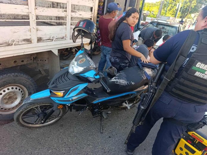 Huetamo, Mich.- Martes 03 de febrero de 2026.- Una mujer y una niña resultaron lesionadas cuando su motocicleta chocó contra la puerta de un automóvil que estaba estacionado en la colonia Centro de la cabecera municipal de Huetamo, informaron autoridades policiales y de rescate.