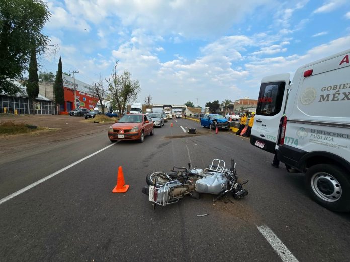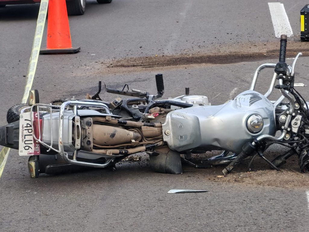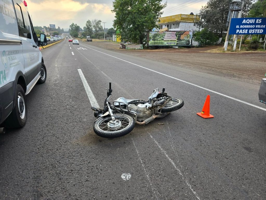 Morelia, Mich.- Lunes 20 de abril de 2026.- Un motociclista falleció tras ser impactado por una automovilista, quien resultó lesionada, percance que se registró sobre el kilómetro 6 de la carretera Morelia-Pátzcuaro, informaron autoridades policiales y de rescate.