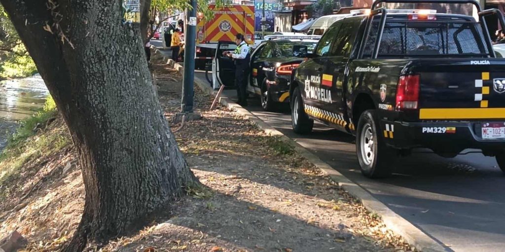 Morelia, Michoacán.- Jueves 06 de noviembre de 2025.- Bomberos y policías auxiliaron a una mujer que resultó lastimada tras sufrir una caída a la orilla del Río Chiquito, ubicado en la avenida Solidaridad, al sur de Morelia, informaron fuentes allegadas al tema.