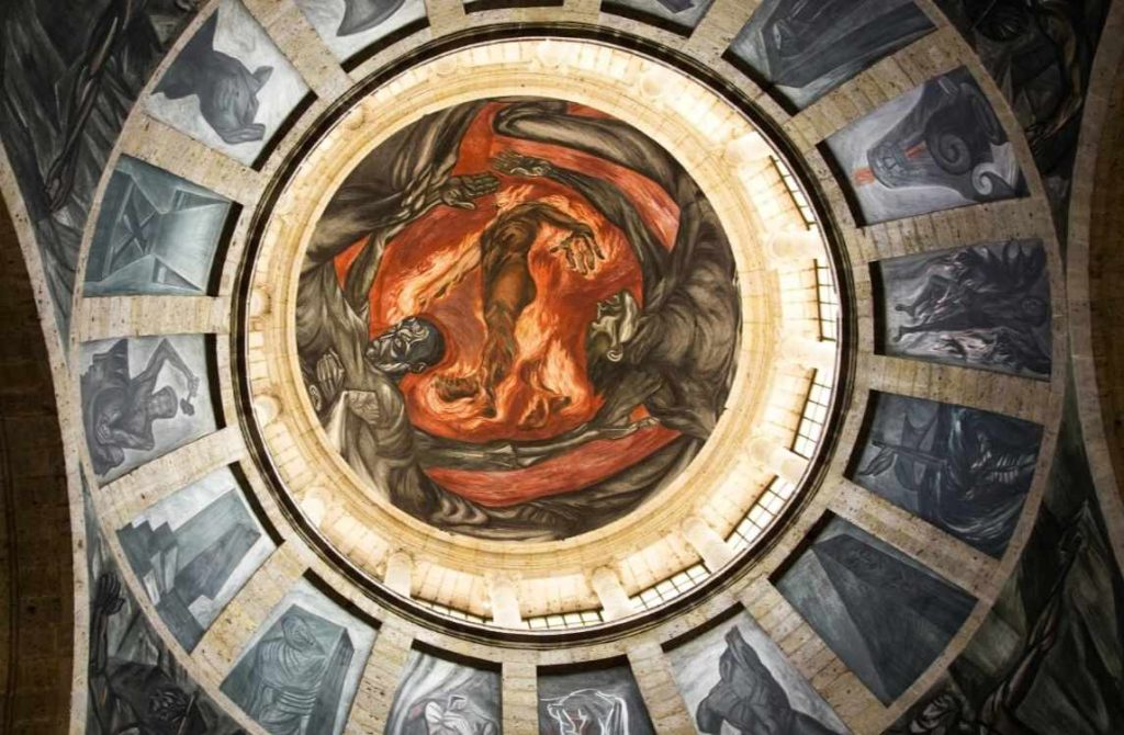 Pero no solo su historia y arquitectura hacen único a este espacio, otro de los aspectos por los que realmente vale la pena visitarlo, aunque sea una vez en la vida, es por el conjunto de murales de José Clemente Orozco, en los que plasmó su visión sobre la condición humana, la lucha social y los grandes desafíos de la humanidad. Uno de los murales más famosos y representativos es el Hombre de fuego, que se encuentra en la bóveda central del edificio y es considerado una obra maestra del siglo XX.