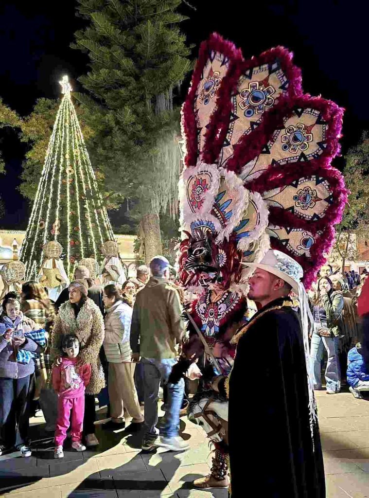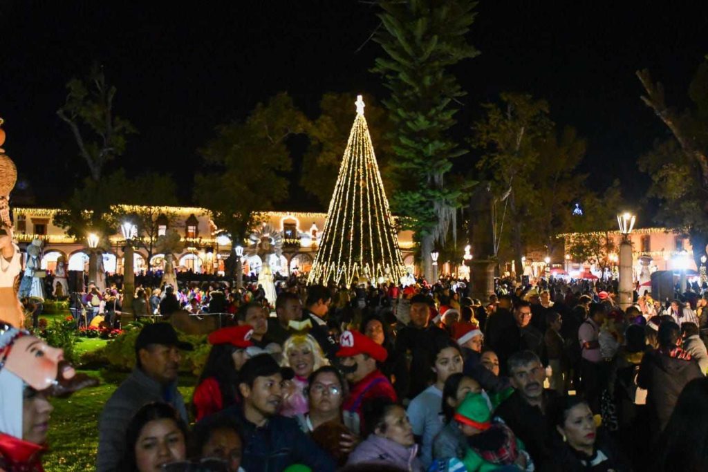 Pátzcuaro, Michoacán, 8 de diciembre de 2025.- La plaza Vasco de Quiroga, en Pátzcuaro, se iluminó este domingo con la inauguración del árbol y el nacimiento artesanal monumentales, ante los ojos de cientos de personas de distintas edades que acudieron al Pueblo Mágico para vivir este evento.