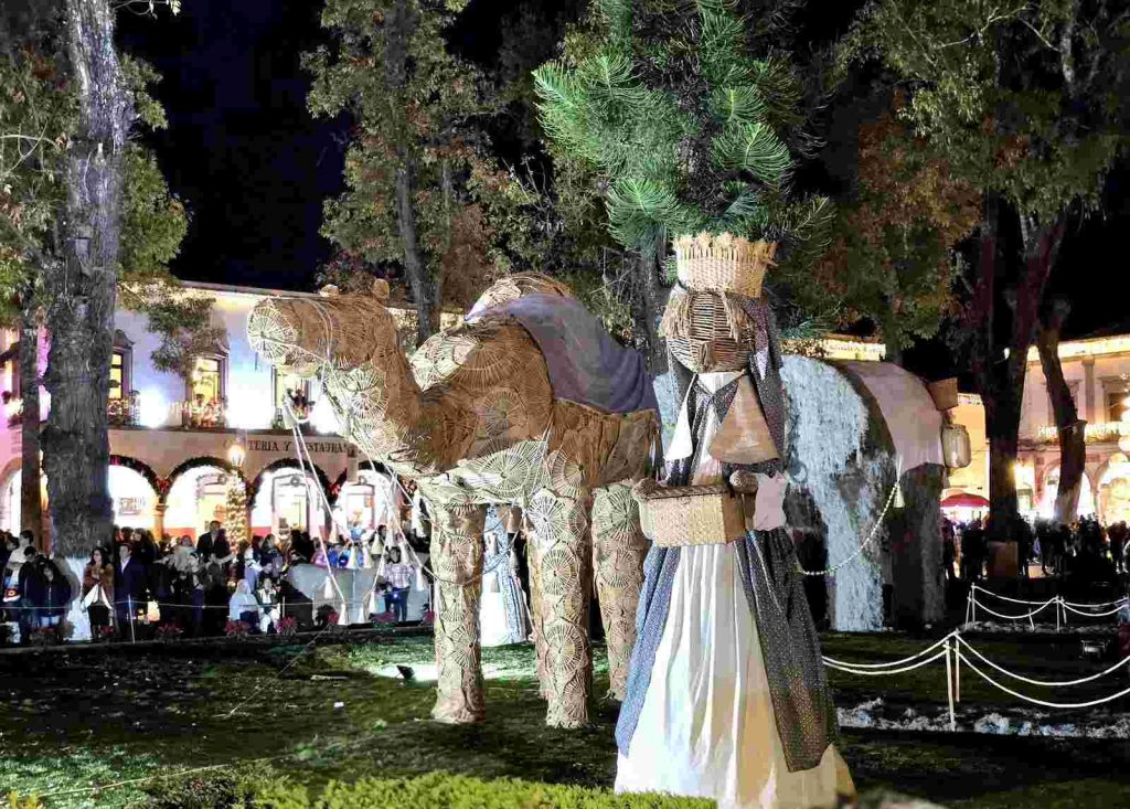 Único en su tipo, el nacimiento monumental de Pátzcuaro cuenta con más de 26 piezas artesanales creadas por los artífices de Michoacán. Entre las obras que lo conforman se encuentran los Tlahualiles de Sahuayo, la Danza de los Viejitos de Jarácuaro, las Aguadoras de Uruapan, y los Cuerudos de Apatzingán, elementos michoacanos que acompañan a las obras religiosas de más de cinco metros de altura, como la Virgen María, San José, los tres Reyes Magos, y el ángel.