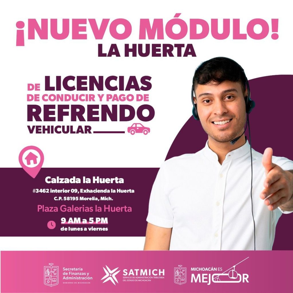 Morelia, Michoacán, 28 de enero de 2026.- En su interés de ofrecer mayor atención, comodidad y servicio a la ciudadanía, la Secretaría de Finanzas y Administración, a través del Servicio de Administración Tributaria de Michoacán (Satmich), instaló una oficina de Recaudación en Plaza Galerías La Huerta, donde las personas tendrán oportunidad de tramitar sus licencias de conducir y pagar refrendos vehiculares, anunció el tesorero estatal, Luis Navarro.