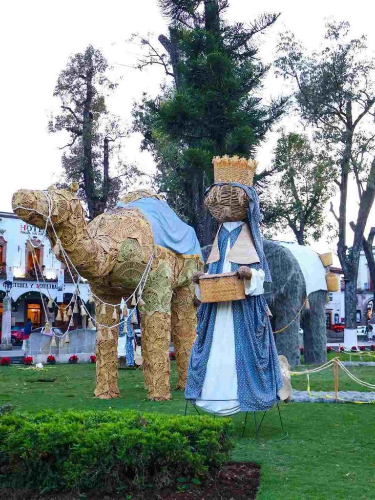 El nacimiento monumental de Pátzcuaro es único en su tipo, ya que cuenta con más de 26 piezas creadas por personas artesanas de Michoacán, donde están integrados productos de las siete regiones del estado, como chuspata, barro moldeado, textil, máscaras de madera y popotillo de grano de maíz, provenientes de Pátzcuaro, Uruapan, Morelia, Apatzingán, Playas de Michoacán, Zamora, y el País de la Monarca, recordó la Sectur.
