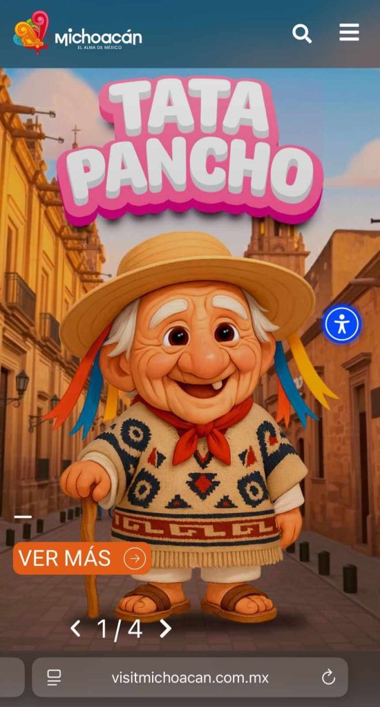 El secretario recordó que Tata Pancho se puede encontrar en el sitio https://visitmichoacan.com.mx/, donde el personaje virtual interactúa con el usuario para entregar información de sitios de interés, y facilitar la elaboración de un itinerario basado en los gustos y presupuesto de las y los viajeros.