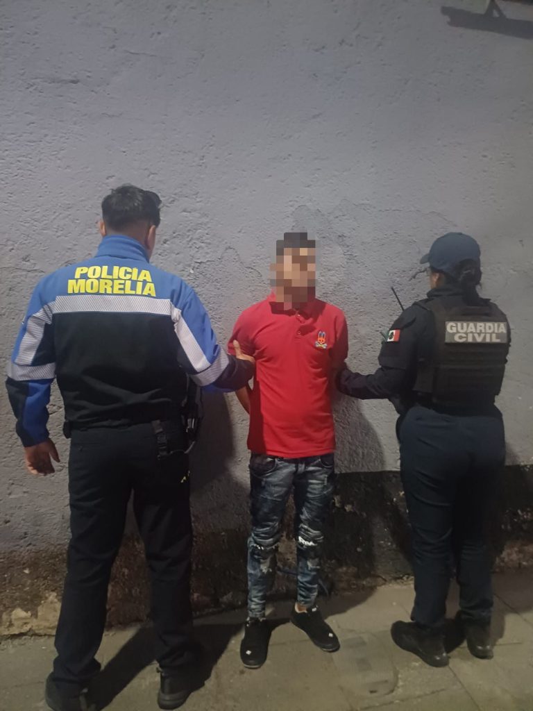 Agentes de Policía Morelia, en coordinación con Guardia Civil, detuvieron a un masculino señalado por robo a tiendas OXXO, quien contaba con una orden de aprehensión vigente, en la colonia Elías Pérez Ávalos.