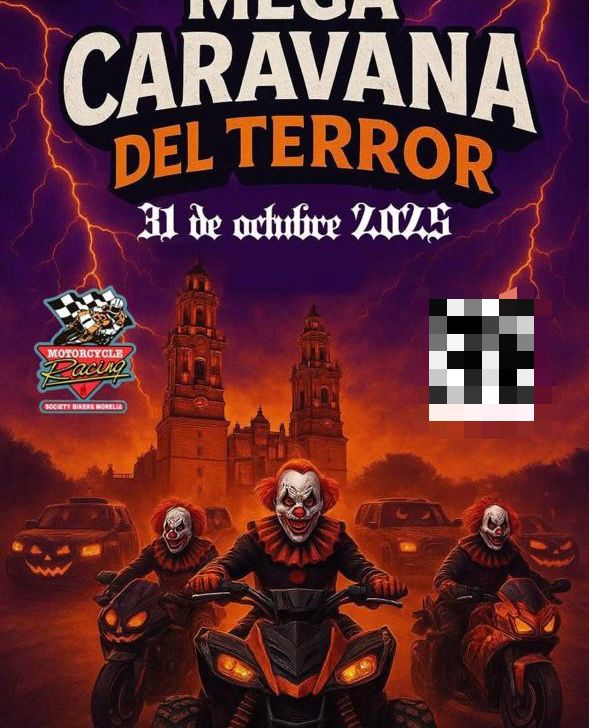 Morelia, Michoacán; 28 de octubre de 2025.- Policía Morelia informa que no avala ni autoriza el evento denominado “Mega Caravana del Terror”, programado para el próximo 31 de octubre de 2025 y promovido por un grupo identificado como Motorcycle Racing Society Bikers, ya que carece de los permisos y autorizaciones correspondientes para su realización en la capital michoacana.