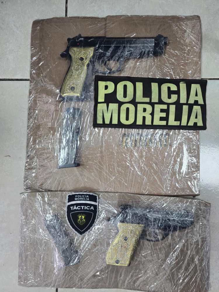 Morelia, Michoacán; 27 de octubre de 2025. Derivado de un reporte ciudadano, oficiales de Policía Morelia realizaron la detención de dos sujetos en posesión de armas de fuego, quienes fueron puestos a disposición de la Fiscalía General de la República (FGR).