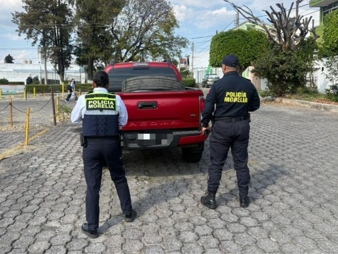 Morelia, Michoacán; 4 de febrero de 2026. Oficiales de Policía Morelia atendieron un reporte sobre el robo de un vehículo tipo pickup.