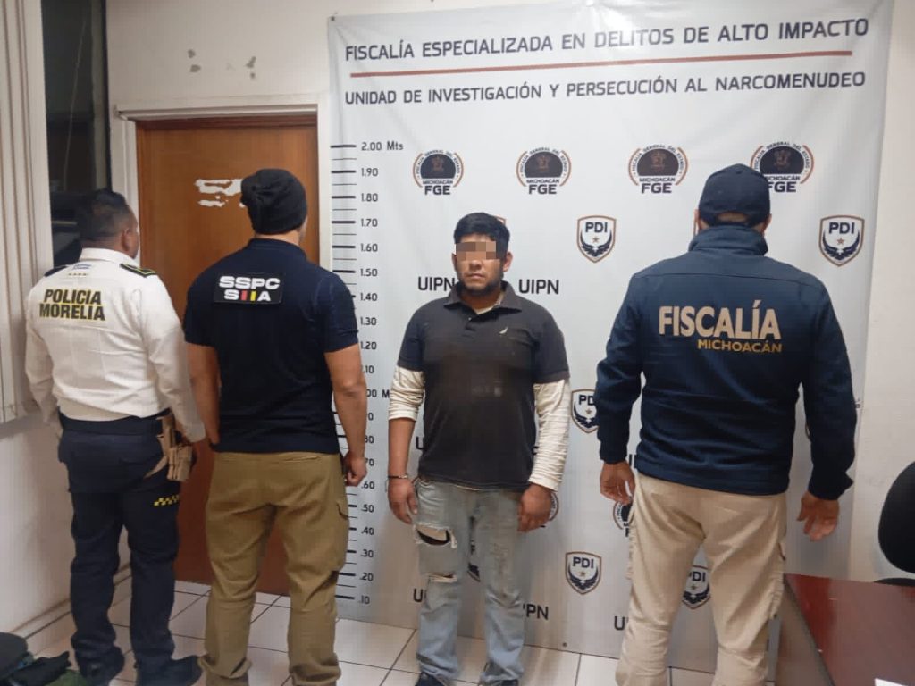 Derivado de labores de prevención y vigilancia, Policía Morelia aseguró a un sujeto y puso a disposición de la Fiscalía General del Estado un vehículo, así como diversos indicios relacionados con hechos constitutivos de delito contra la salud, en la colonia Jardines de Guadalupe.