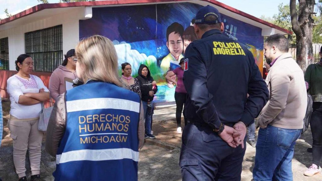 Morelia, Michoacán; 3 de diciembre de 2025.- En cumplimiento de su compromiso con la seguridad y la tranquilidad de la ciudadanía, Policía Morelia informa que, en coordinación con la Comisión Estatal de Derechos Humanos de Michoacán (CEDH) y bajo la presencia del titular de dicha institución, Josué Alfonso Mejía Pineda; así como del Comisario, Isaac Olguín Guerrero, se realizó un recorrido por la localidad de El Porvenir y una reunión con madres y padres de familia de la Escuela Primaria Federal Benito Juárez.