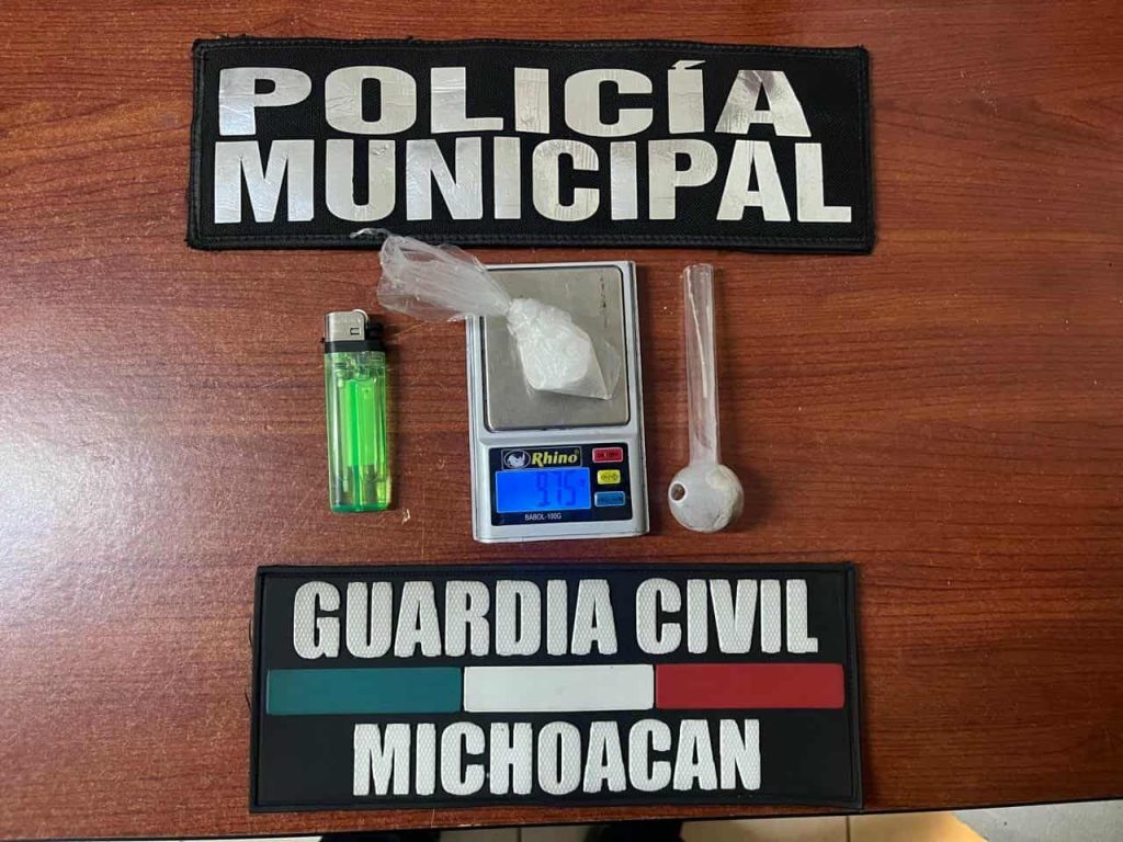 Pátzcuaro, Mich.- Viernes 21 de noviembre de 2025.- Un joven en posesión de droga sintética fue detenido por elementos de la Guardia Civil (GC) y patrulleros municipales de Pátzcuaro durante la noche de ayer jueves, informaron autoridades policiales.