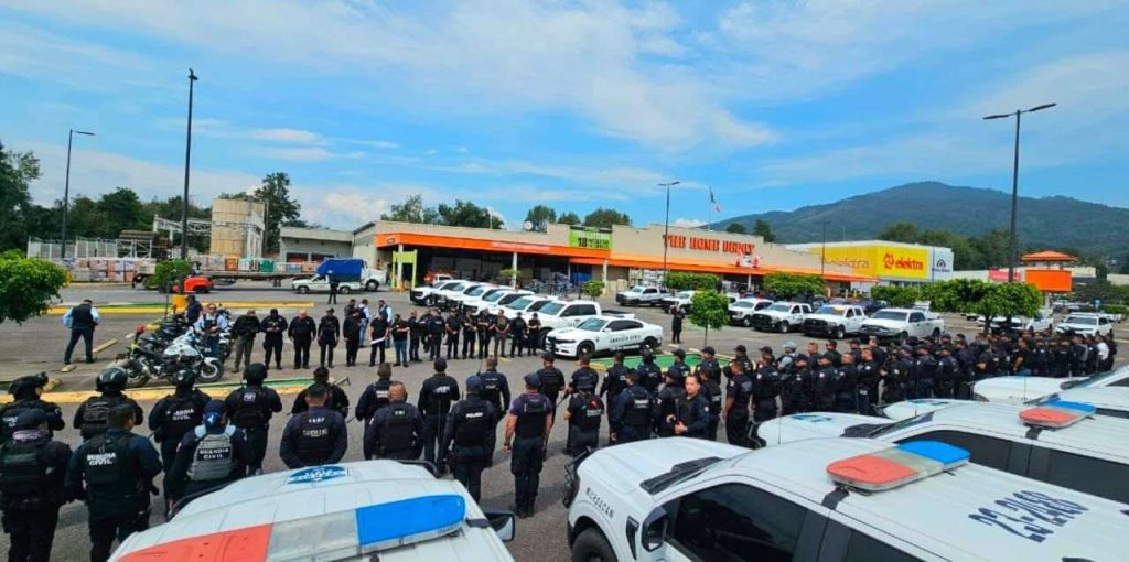 Uruapan, Mich.- 2 de octubre de 2025.- Con la finalidad de garantizar el orden público en la ciudad de Uruapan, los elementos de la Secretaría de Seguridad Pública (SSP), en coordinación con autoridades de los tres órdenes de gobierno robustecen día y noche las labores del operativo Blindaje Uruapan.