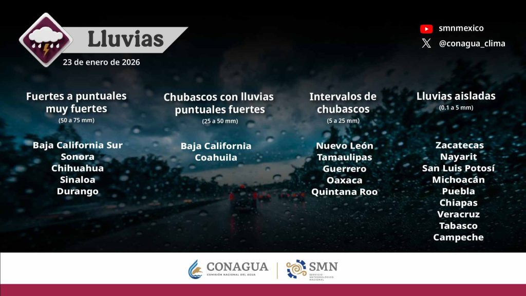 El riesgo carretero aumentará significativamente la noche del sábado en Coahuila debido al pronóstico de lluvia engelante, un fenómeno que congela la superficie asfáltica instantáneamente. Además, se esperan nevadas o caída de aguanieve en las sierras de Baja California, Sonora, Chihuahua, Sinaloa y Durango.