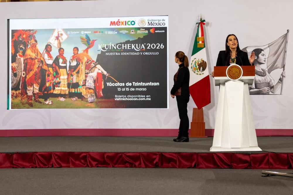 Ciudad de México, 26 de febrero de 2026.- Con el respaldo de la presidenta de México, Claudia Sheinbaum Pardo, este día se presentó a nivel nacional la edición 2026 de la K’uínchekua, encuentro donde las portadoras y portadores de las tradiciones mostrarán la riqueza de Michoacán, del 13 al 15 de marzo en las Yácatas de Tzintzuntzan.