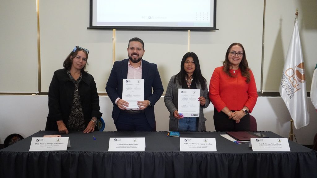Lo anterior, en el marco de la formalización de un convenio de colaboración que suscribió con la coordinadora de la Casa de la Mujer Indígena y Afromexicana de Cherán (CAMIA), Ana Mireya Campanur, con el objetivo de fortalecer la prevención y atención de la violencia contra las mujeres indígenas y/o afromexicanas, así como la protección de sus derechos sexuales y reproductivos.