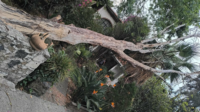 El tercer árbol cayó sobre una palmera en un domicilio de la calle Jesús Carranza, casi esquina con el Libramiento Poniente.