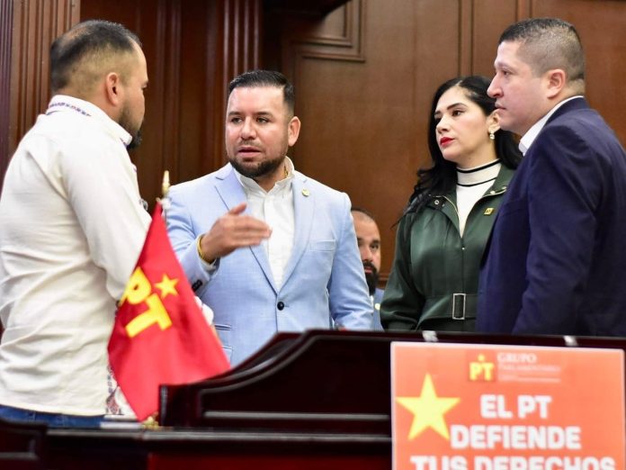 Morelia, Michoacán, a 27 de febrero de 2026.- “Hoy estamos muy contentos de anunciarles que en Michoacán votamos a favor del pueblo una vez más, que en el Grupo Parlamentario del Partido del Trabajo, votamos a favor de la reducción de la jornada laboral a 40 horas y esto, es una conquista más de la Cuarta Transformación y de todas y todos los trabajadores mexicanos ”, señaló el coordinador de la bancada del PT en el Congreso de Michoacán, Reyes Galindo Pedraza.