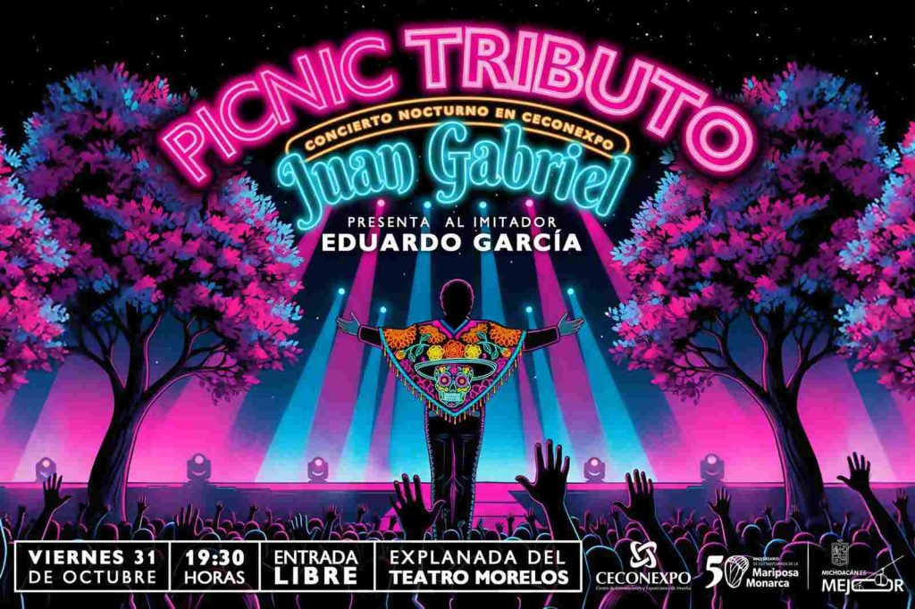Morelia, Michoacán, 27 de octubre de 2025.- El Centro de Convenciones y Exposiciones de Morelia (Ceconexpo) anunció el regreso de sus ya tradicionales picnics, esta vez con un tributo a Juan Gabriel. Será un evento gratuito que celebrará la vida, obra y legado del “divo de Juárez”, en el marco de la celebración por la Noche de Muertos.