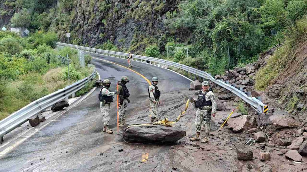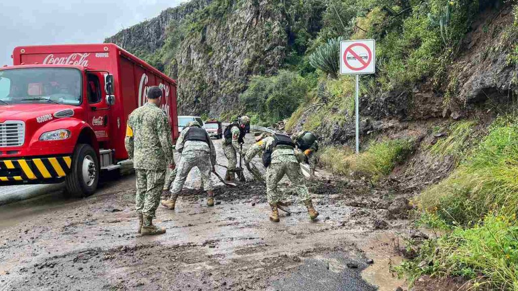 Las fuerzas federales, estatales y municipales continúan desplegadas en las zonas afectadas con personal, maquinaria y equipo especializado para el restablecimiento de servicios, la apertura de caminos y la rehabilitación de infraestructura básica.