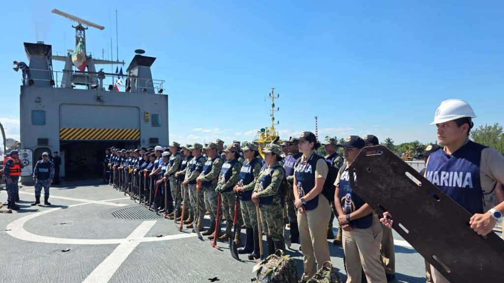 Cabe destacar que hoy para realizar un Puente Marítimo, se encuentra próximo a su arribo al puerto de Tuxpan el Buque Patrulla Oceánica ARM Guanajuato, mismo que zarpó desde Dos Bocas, Tabasco, con 85 elementos pertenecientes a las Brigadas de Respuesta a Emergencias para sumar apoyos en la zona afectada