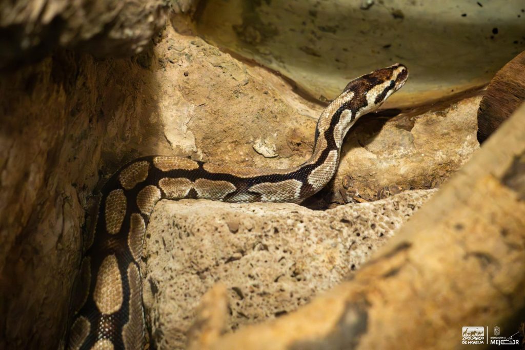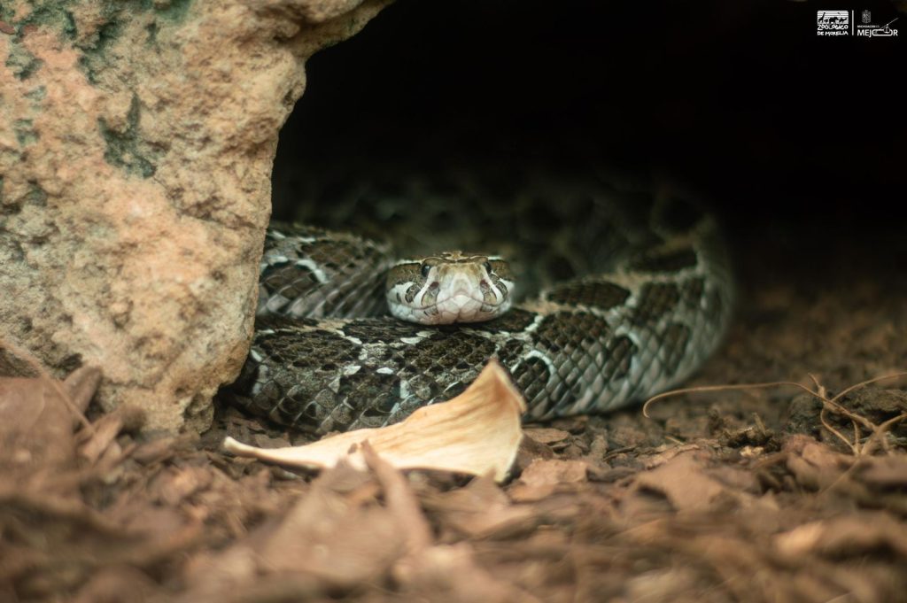 La exhibición ofrece un fascinante juego de contrastes, donde destacan la cascabel oscura de Querétaro, la habitante más pequeña de la colección, y una encantadora cría de pitón bola con apenas meses de vida. En el otro extremo, la majestuosidad se hace presente con la pitón reticulada, un ejemplar impresionante que alcanza aproximadamente los 5 metros.