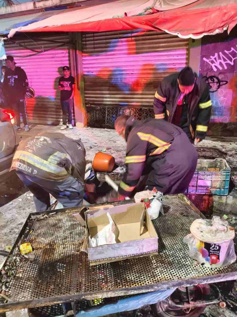 Vecinos y comerciantes trataron de sofocar el fuego, pero no fue si no hasta que intervinieron los bomberos que se logró eliminar por completo el siniestro, sin que por fortuna hubiera personas lesionadas.