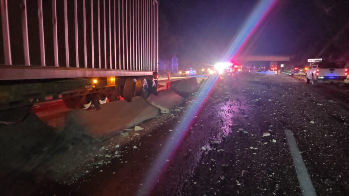 Ziracuaretiro, Mich.- 06 de diciembre de 2025.- Durante la madrugada de este sábado, se registró un choque múltiple que involucró a tres camiones de carga, en la autopista Siglo XXI. A pesar de la magnitud del percance no se reportaron personas heridas.