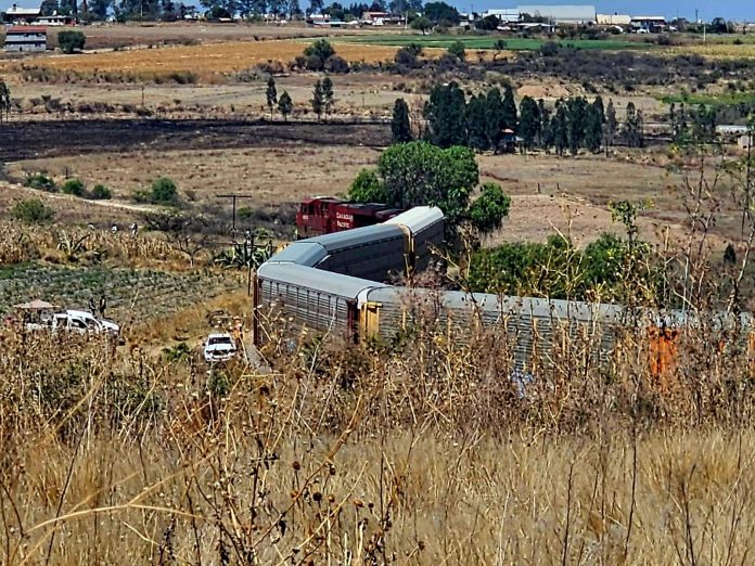 Maravatío, Mich.- Martes 25 de febrero de 2026.- Este martes, un tren se descarriló parcialmente al llegar a la población de Loma de la Rosa, en el municipio de Maravatío, informaron fuentes allegadas al tema, las cuales agregaron que los vagones no volcaron, pues únicamente las ruedas de acero se salieron de los rieles.