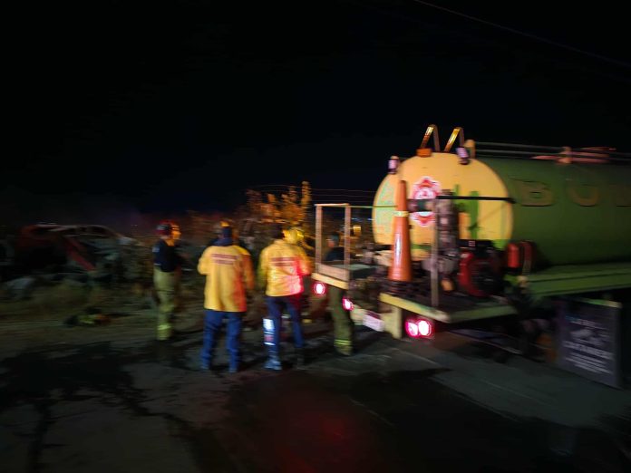 Morelia, Mich.- Jueves 25 de diciembre de 2025.- Un incendio en un deshuesadero de vehículos se registró la noche de este jueves al norte de la ciudad de Morelia, indicaron fuentes de rescate, las cuales agregaron que al menos cuatro automotores viejos resultaron afectados.