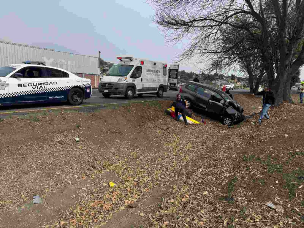La otra situación sucedió sobre la carretera Morelia-Pátzcuaro, a la altura del kilómetro 22, cerca de la Tenencia de Tiripetío. En el sitio, una camioneta Toyota Avanza se salió de la carpeta asfáltica, cayó a una cuneta central y chocó contra un árbol.