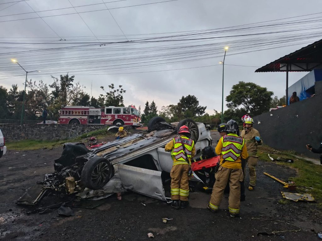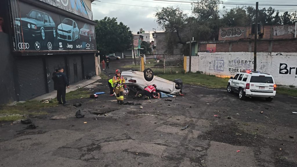 Primero, alrededor de las 06:25 horas, ocurrió la volcadura de un automóvil sobre Avenida Escuadrón 201/Décima, justo en la entrada al área del Mercado Emiliano Zapata, ubicado en la colonia Jardines de Guadalupe, en las inmediaciones del Estadio Morelos.