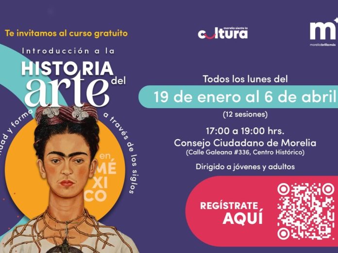 El primer taller es “Introducción a la historia del arte en México: identidad y forma a través de los siglos”, que consta de 12 sesiones programadas para los días lunes, del 19 de enero al 6 de abril, en un horario de 17:00 a 19:00 horas. La sede de esta actividad será el Consejo Ciudadano e Morelia, ubicado en la calle Galeana #336, en el Centro Histórico.