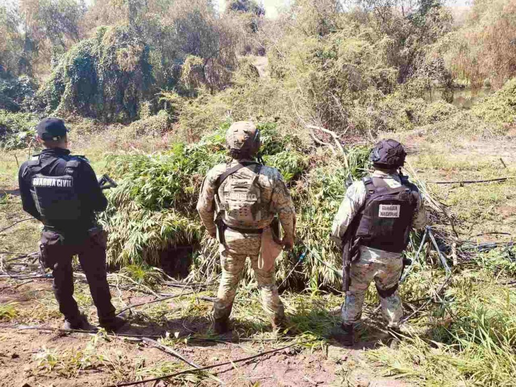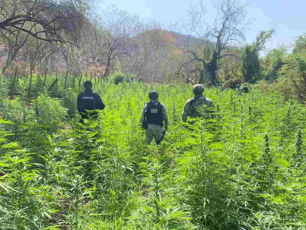 La acción se realizó en la localidad de Ajuanato, donde personal de la Guardia Civil, en coordinación con el Ejército Mexicano y la GN, ubicó el predio utilizado para el cultivo ilícito. En el sitio también fue detectado un campamento presuntamente empleado por integrantes de la delincuencia organizada, donde se localizaron diversas prendas tácticas.