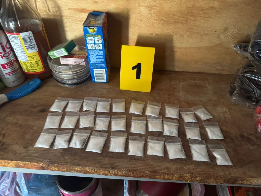 Como resultado de los cateos, se aseguraron dosis con sustancia granulada al parecer metanfetamina, de hierba seca con características de la marihuana y cartuchos útiles de calibre 7.62, así como equipos de radiocomunicación, los cuales quedaron a disposición de la autoridad competente.